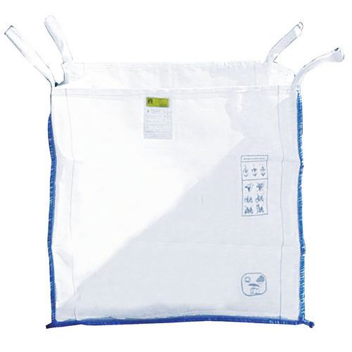 | Intitulé du produit | Sac à gravats non réutilisable, fond plat, Capacité: 1500 L, Coloris: Blanc, Modèle: Sac à gravats |