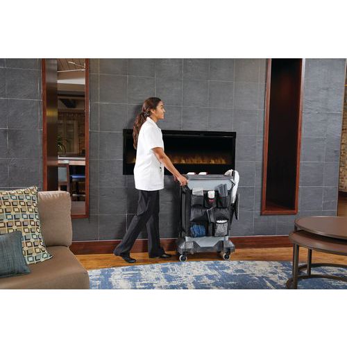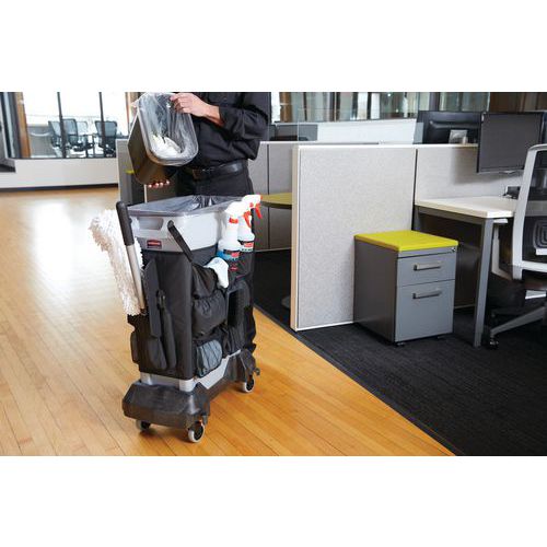 Equipé de 19 compartiments pour stocker et transporter les produits de nettoyage couramment utilisés et les sacs poubelles, nécessaires au nettoyage et à la collecte des déchets.