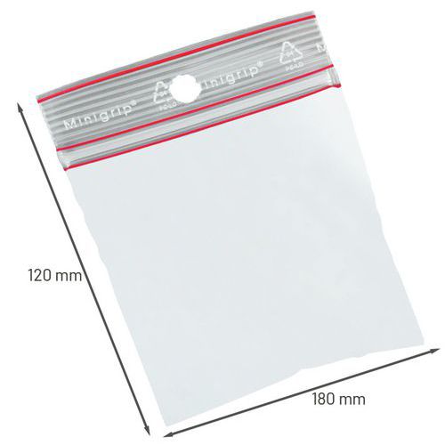 Sachet plastique Minigrip, Épaisseur: 100 µm, Matériau: Polyéthylène, Hauteur: 180 mm, Largeur: 120 mm