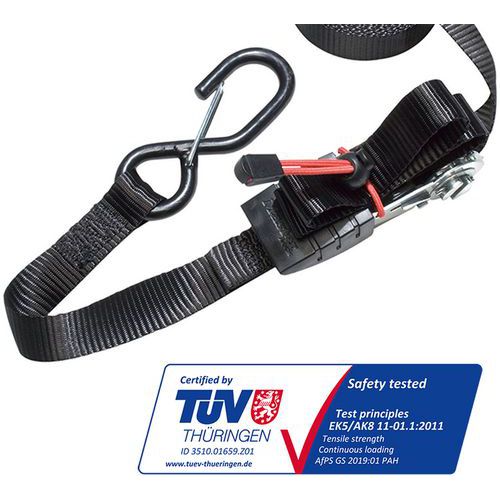 | Intitulé du produit | Sangle à cliquet avec crochets en S, Longueur: 4250 mm, CMU: 400 kg, Largeur: 25 mm, Coloris: Gris |