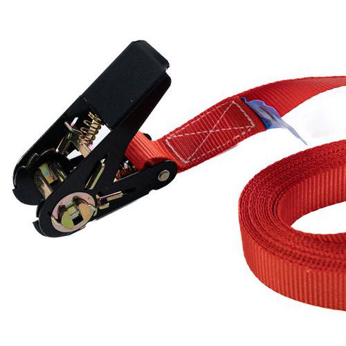 | Intitulé du produit | Sangle d'arrimage à tendeur cliquet, Longueurs: 5 m, CMU: 350 kg, Largeur: 25 mm, Coloris: Rouge |