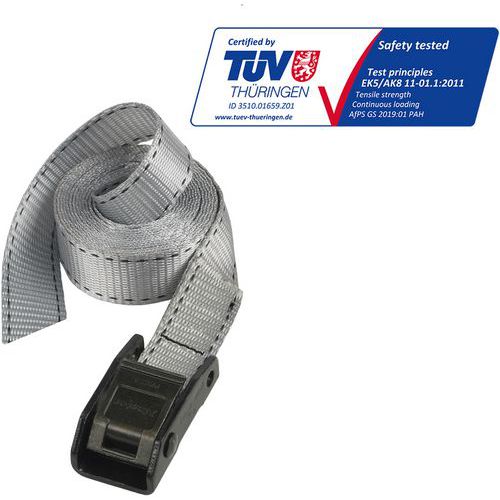 | Intitulé du produit | Sangles bagagères, Longueur: 2500 mm, CMU: 150 kg, Largeur: 25 mm, Coloris: Gris, Sangle matériau: Polyester |