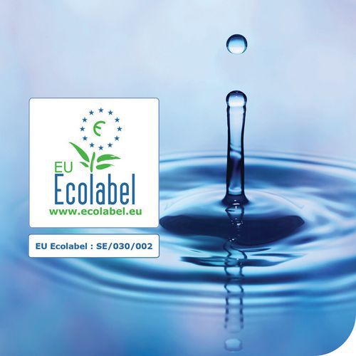 Ce produit est labellisé Éco-label Européen, ce qui garantit que la production de ce produit a été pensée en prenant en compte les aspects environnementaux, et ce sur l'ensemble de son cycle de vie (durée de vie, énergie, eau, déchets, substances chimiques…), conformément au cahier des charges défini par ce label.