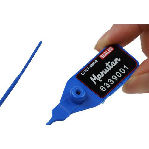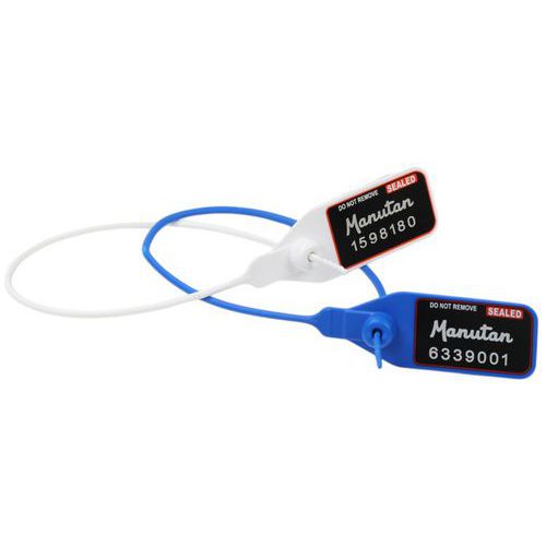 Scellé à identification par numérotation unique. Marquage : chiffrage par série (11, 12, 13, etc.). Scellé avec tige lisse avec mécanisme de fermeture métallique.