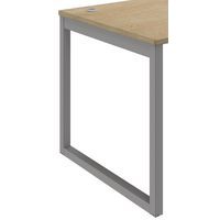 Bureau esthétique et contemporain. Plateau en mélaminé lavable, anti-rayures et antireflets. Passage de câbles dans le panneau avec bouchon de fermeture en ABS. Piétement tubulaire.