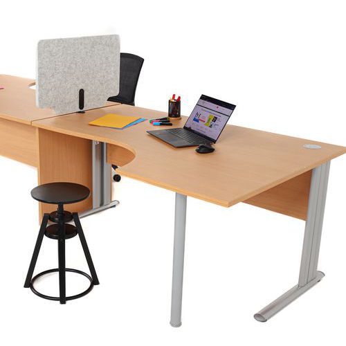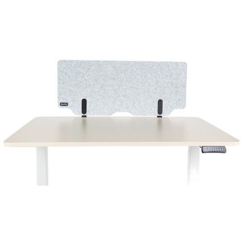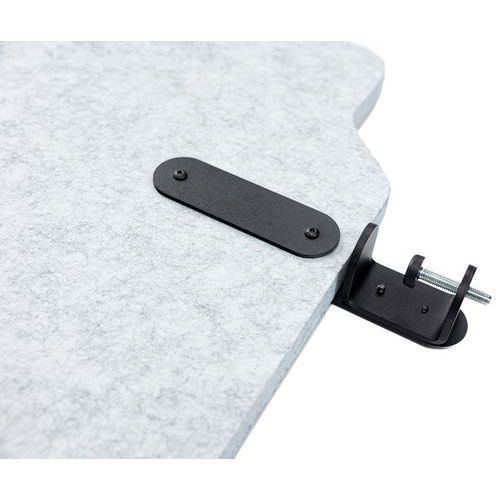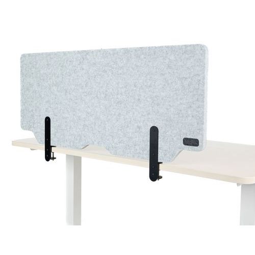 Séparateur de bureau double fonctionnalité apporte de l'intimité et de l'absorption acoustique. Séparateur à fixer sur le bureau, épaisseur de plateau acceptée de 5 à 40 mm. Découpe pour faciliter le passage des câbles électriques. 2 coloris chics et intemporels design de découpe original.