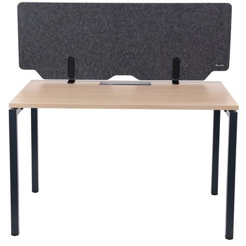 Séparateur de bureau double fonctionnalité apporte de l'intimité et de l'absorption acoustique. Séparateur en pose libre sur le bureau- flexibilité dans l'utilisation- très léger le produit se déplace très facilement. Produit facile à poser avec une découpe facilitant le passage de câble- (2 pieds noirs).. Découpe pour faciliter le passage des câbles électriques. 2 coloris chics et intemporels design de découpe original.