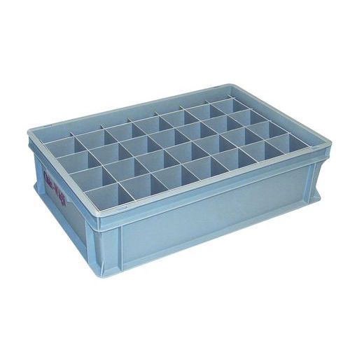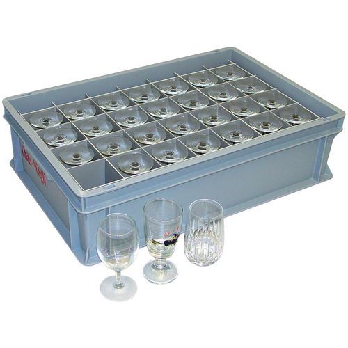 Séparateurs pour verres à insérer dans des bacs gerbables Normes Europe RAKO 3-208Z-0 ou 3-201Z-0 selon les références. Les bacs peuvent contenir jusqu'à 40 verres.