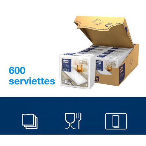 | Intitulé du produit | Serviette Dinner blanc pliage 1/8 12x50 serviettes, Matière textile: Papier, Coloris: Blanc |