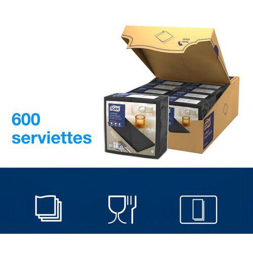 | Intitulé du produit | Serviette Dinner pliage 1/8, Matière textile: Papier, Coloris: Noir |