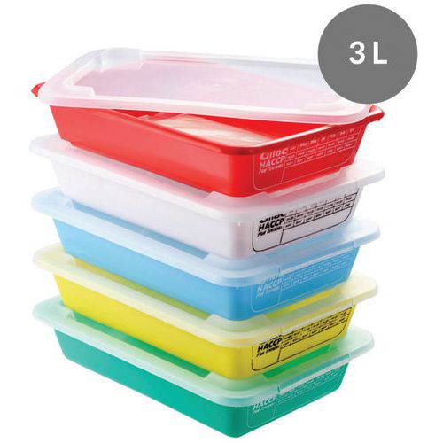 | Intitulé du produit | Set de bacs plats témoins avec couvercle, Capacité: 3 L, Emboîtable: oui, Hauteur hors tout: 70 mm |