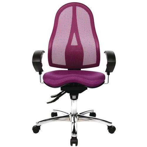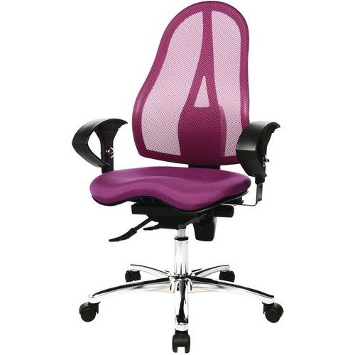 Siège de bureau ergonomique doté du contact permanent avec réglage en fonction du poids. Assise Fitness-Ortho mobile en 3D grâce à la technologie Sitness®, pour un dos plus fort, une meilleure posture et plus de confort au quotidien. Vérin pneumatique pour régler la hauteur et la profondeur d'assise. Dossier également réglable en hauteur pour plus de confort. Blocage du mécanisme en 3 positions différentes. Plus de maintien avec les accoudoirs réglable en hauteur de 26 à 32cm. Tissu 100% polypropylène (440 g/m²). Idéal pour le télétravail