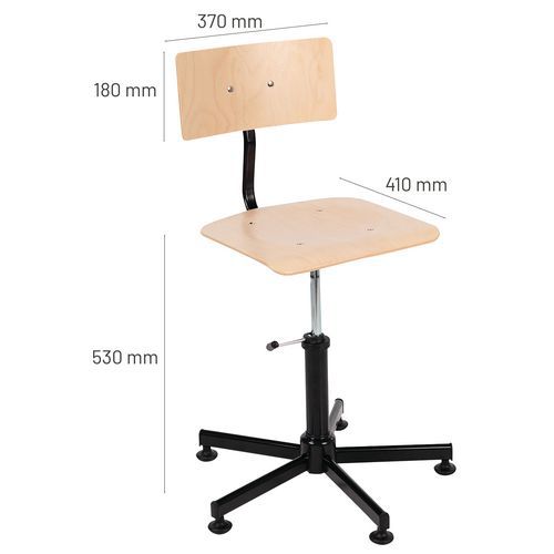 | Intitulé du produit | Siège d'atelier en bois, Avec accoudoir: non, Type de piétement: 5 pieds, Assise matériau: Bois multiplis |