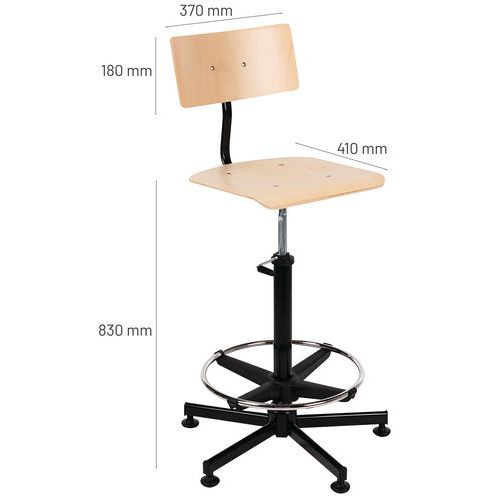 | Intitulé du produit | Siège d'atelier en bois, Avec accoudoir: non, Type de piétement: 5 pieds, Assise matériau: Bois multiplis |