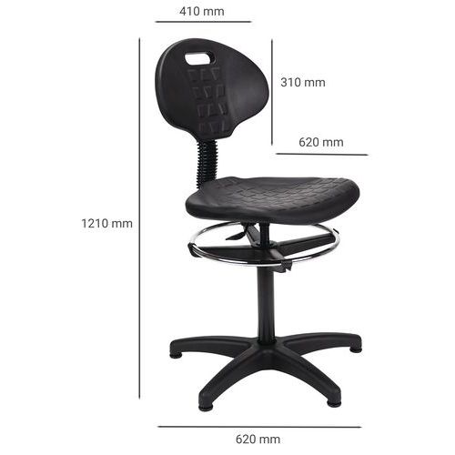 | Intitulé du produit | Siège d'atelier ergonomique, Avec accoudoir: non, Type de pied: Patins, Assise matériau: Polyuréthane |