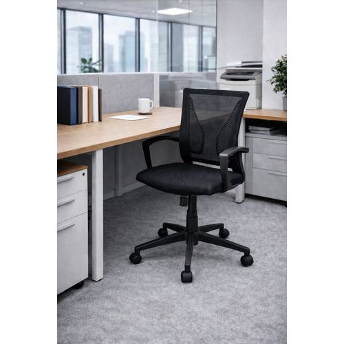 | Intitulé du produit | Siège de bureau reconditionné noir, Avec accoudoir: oui, Type de pied: Roulettes, Assise matériau: Polyester |