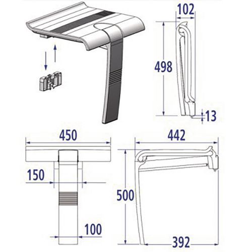 | Intitulé du produit | siège de douche Design, Assise largeur: 450 mm, Avec accoudoir: non, Assise hauteur: 450 mm |