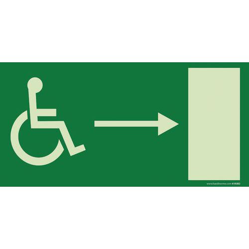 Signalétique photoluminescent sortie de secours droite + picto handicapé, Adhésif: oui Signalétique photoluminescent sortie de secours droite + picto handicapé, Adhésif: oui