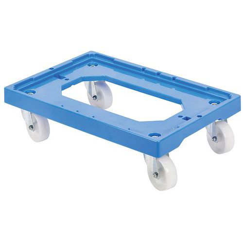| Intitulé du produit | Socle rouleur 4 roues pivotantes, Coloris: Bleu, Longueur hors tout: 613 mm, Largeur hors tout: 414 mm |