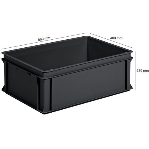 Bac norme Europe, Capacité: 40 L, Gerbable: oui, Hauteur hors tout: 220 mm, Largeur hors tout: 400 mm Bac norme Europe, Capacité: 40 L, Gerbable: oui, Hauteur hors tout: 220 mm, Largeur hors tout: 400 mm