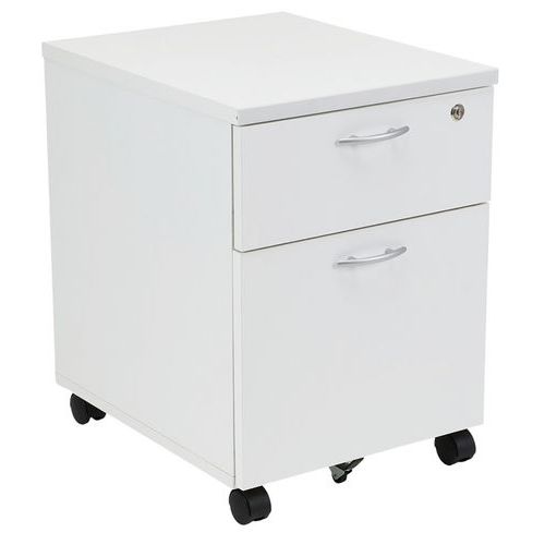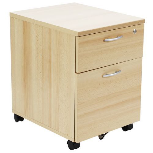 Caisson avec tiroirs en panneaux de particules surfacés mélaminés. Mobilier équipé de roulettes anti-basculement. Verrouillage avec serrure à cylindre (1 seul tiroir). Un programme efficace et robuste d’une installation aisée