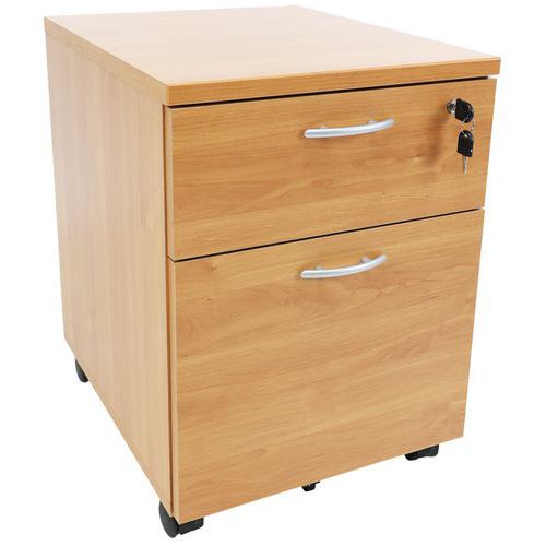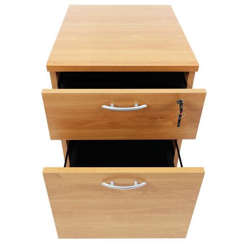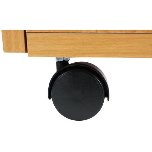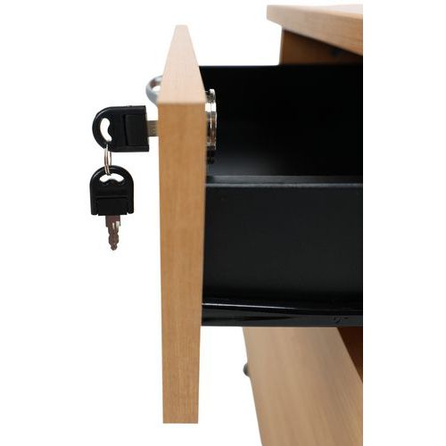 Caisson avec tiroirs en panneaux de particules surfacés mélaminés. Mobilier équipé de roulettes anti-basculement. Verrouillage avec serrure à cylindre (1 seul tiroir). Un programme efficace et robuste d’une installation aisée