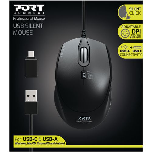 | Intitulé du produit | Souris filaire Pro silencieuse noire, Type de capteur: Optique, Type de molette: Molette de défilement |