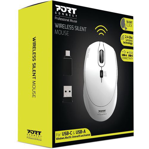 | Intitulé du produit | Souris sans fil Pro silencieuse blanche, Type de capteur: Optique, Type de molette: Molette de défilement |