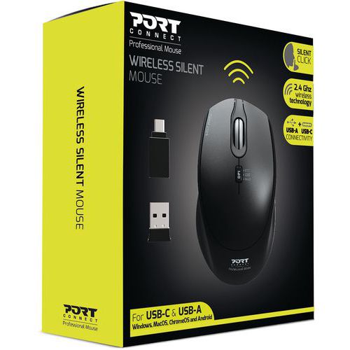 | Intitulé du produit | Souris sans fil Pro silencieuse noire, Type de capteur: Optique, Type de molette: Molette de défilement |