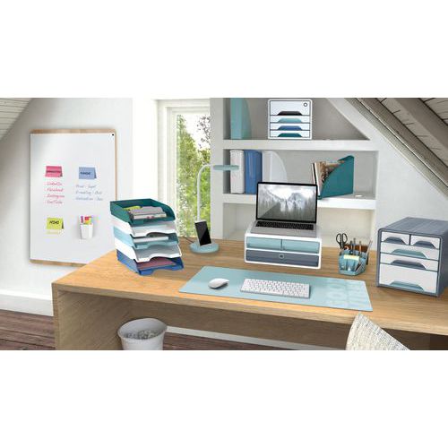 | Intitulé du produit | Sous-main 900 Vert d'eau Good Vibes, Matériau: PVC, Hauteur: 35 cm, Coloris: Bleu/vert, Longueurs: 75 cm |