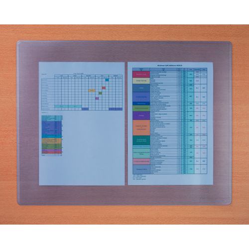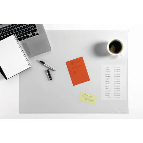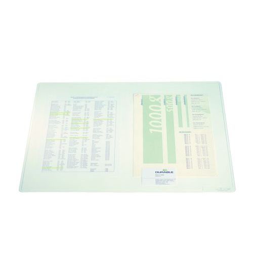 | Intitulé du produit | Sous-main transparent DURAGLAS, Matériau: PVC, Coloris: Transparent, Longueur: 650 mm, Largeur: 500 mm |