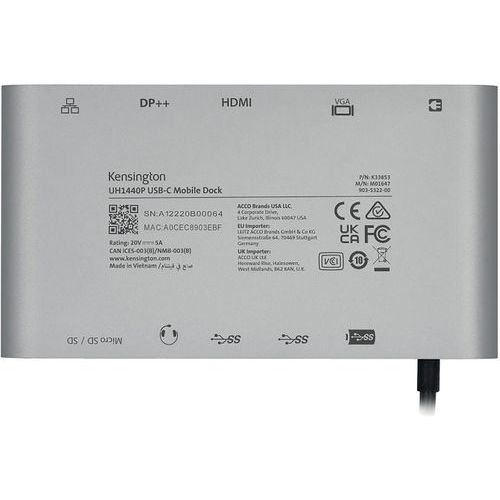 | Intitulé du produit | Station accueil mobile USB-C double sortie DP/HDMI/VGA, Utilisable en extérieur: non, Épaisseur: 75 mm |