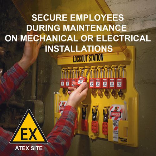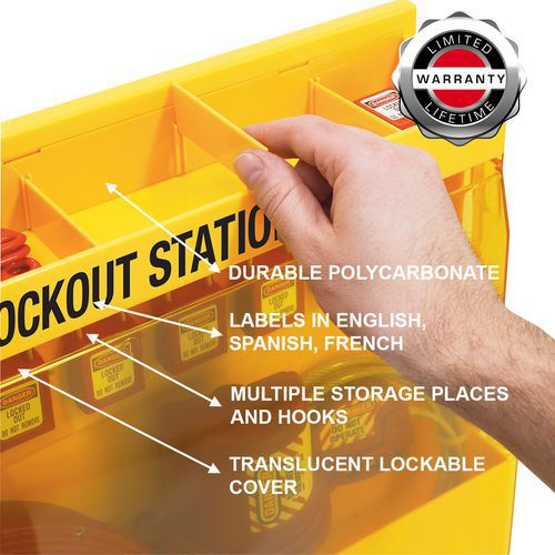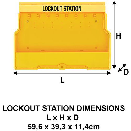 Station de consignation compacte pour stocker et localiser facilement les cadenas et accessoires de consignation pour les machines près d'un point de consignation.