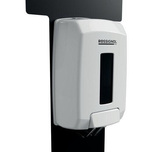 Important, à poser directement sur le sol avec 4 pieds réglables ou à fixer par 4 points. Compatible avec tous gels hydroalcooliques (sauf microbilles).