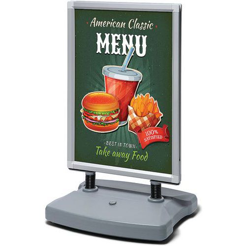 Composition : 1 panneaux publicitaire, 1 pied et 2 roulettes.