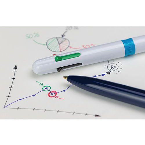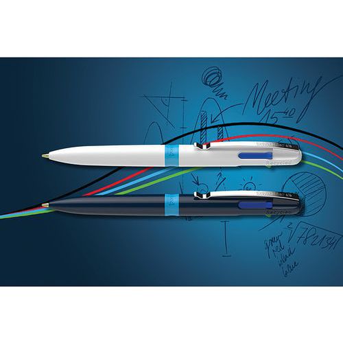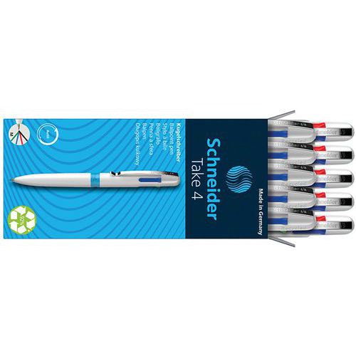 Stylo bille - Take 4 - corps blanc - 4 couleurs d'écriture - Schneider