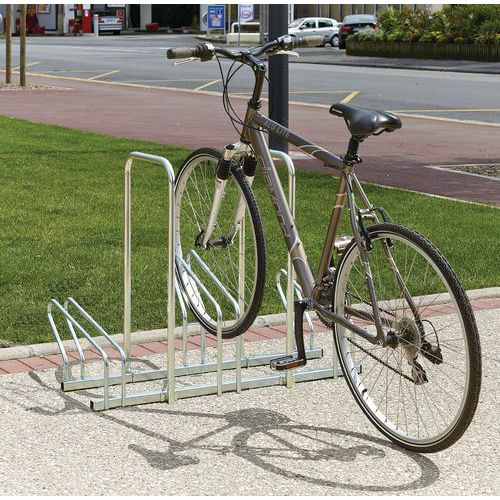 Ce râtelier sur 2 niveaux se fixe facilement au sol. Permet de stabiliser le vélo lors du stationnement. Facilite de rangement des vélos. Modèle Hollande côte à côte avec arceaux pour antivol.