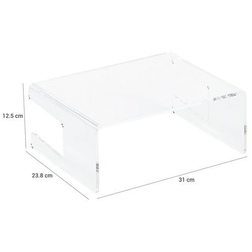 | Intitulé du produit | Support écran ergonomique en acrylique, Charge maxi: 8 kg, Coloris: Transparent, Hauteur hors tout: 12.5 cm |