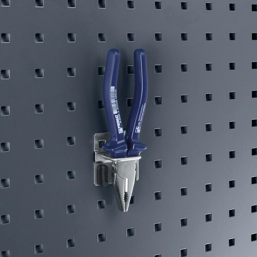 Suspendez vos pinces dans ce support fermé. Modèle robuste de 6 mm d'épaisseur. Fixez le support en un tournemain à l'aide des clips de sûreté en plastique.
