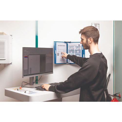 Support mural à pivot 10 pochettes pour format A4, Support matériau: Acier, Coloris: Bleu Support mural à pivot 10 pochettes pour format A4, Support matériau: Acier, Coloris: Bleu