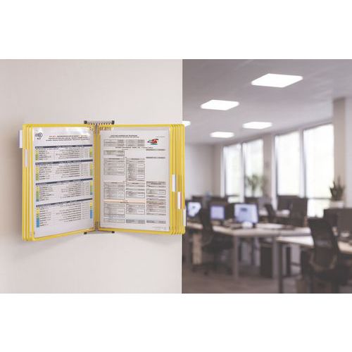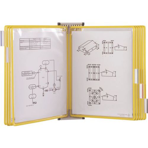 Support mural à pivot 10 pochettes pour format A4, Support matériau: Acier, Coloris: Jaune Support mural à pivot 10 pochettes pour format A4, Support matériau: Acier, Coloris: Jaune