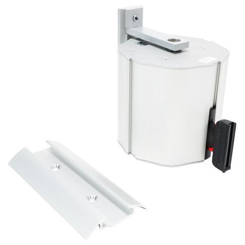 Boîtier à sangle pour une fixation murale. Orientable pour un balisage dans toutes les directions. Frein centrifuge intégré pour éviter le retour trop rapide de la sangle. Rembobinage freiné en cas de relâchement accidentel. Convient à un usage extérieur.