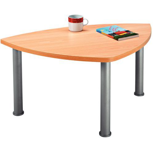 | Intitulé du produit | Table basse, Largeur: 80 cm, Forme: Triangle, Plateau coloris: Hêtre, Hauteur: 42 cm, Piétement coloris: Gris |