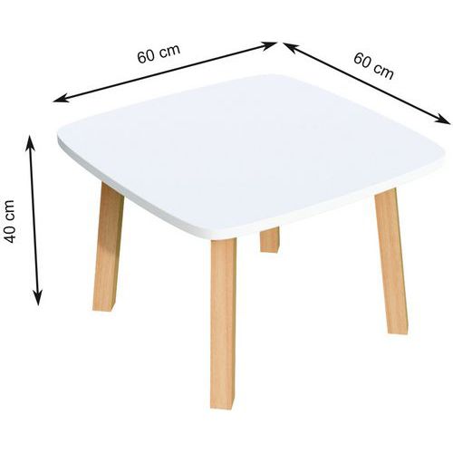 | Intitulé du produit | Table basse Woody, Type de piétement: 4 pieds, Largeur: 60 cm, Forme: Carré, Plateau coloris: Blanc |