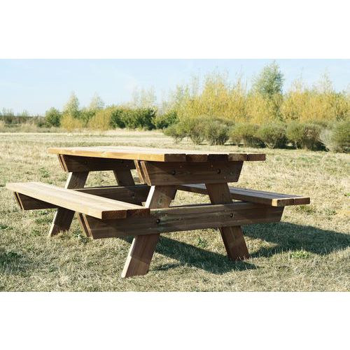 Table de pique-nique en bois de pin fabriquée en France.
