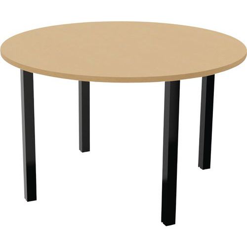 Plateau mélaminé épaisseur 25 mm. Chants ABS anti-choc ép. 2 mm. Piétement composé de 4 pieds métal carré de section 50 x 50 mm finition époxy laqué Vérins de stabilité pour compenser les défauts de planéité du sol (course 10 mm).