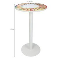 Plateau mélaminé épaisseur 25 mm avec chant ABS 2 mm Plateau hauteur 110 cm Pied acier laqué époxy blanc antirayure. Piètement central sur socle acier laqué époxy blanc anti-rayure. Socle Ø 49,5 cm, épaisseur 4 mm. Livré prêt à monter avec notice.