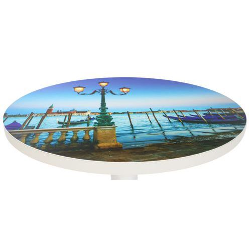 16 décors au choix très "tendance" pour cette table haute de réunion