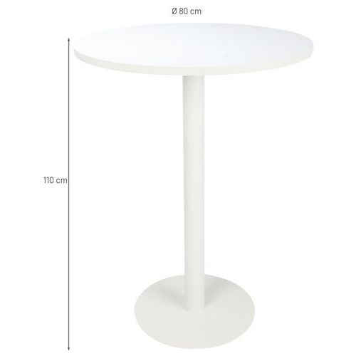 | Intitulé du produit | Table de réunion haute pied métal Ø 80 cm Blanc, Hauteur: 110 cm, Plateau matériau: Mélaminé |