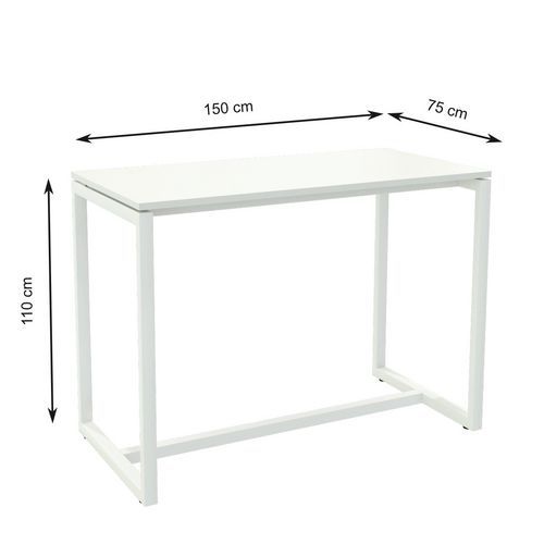 Structure métallique pour une parfaite rigidité. Plateau mélaminé épaisseur 25 mm, avec chant PVC 2 mm. L x H x P plateau : 150 x 110 x 75 cm. Piètement tube acier section 50x40 mm. Peinture laquée époxy blanc. vérins de réglage pour la mise à niveau. Livrée prête à monter avec notice.